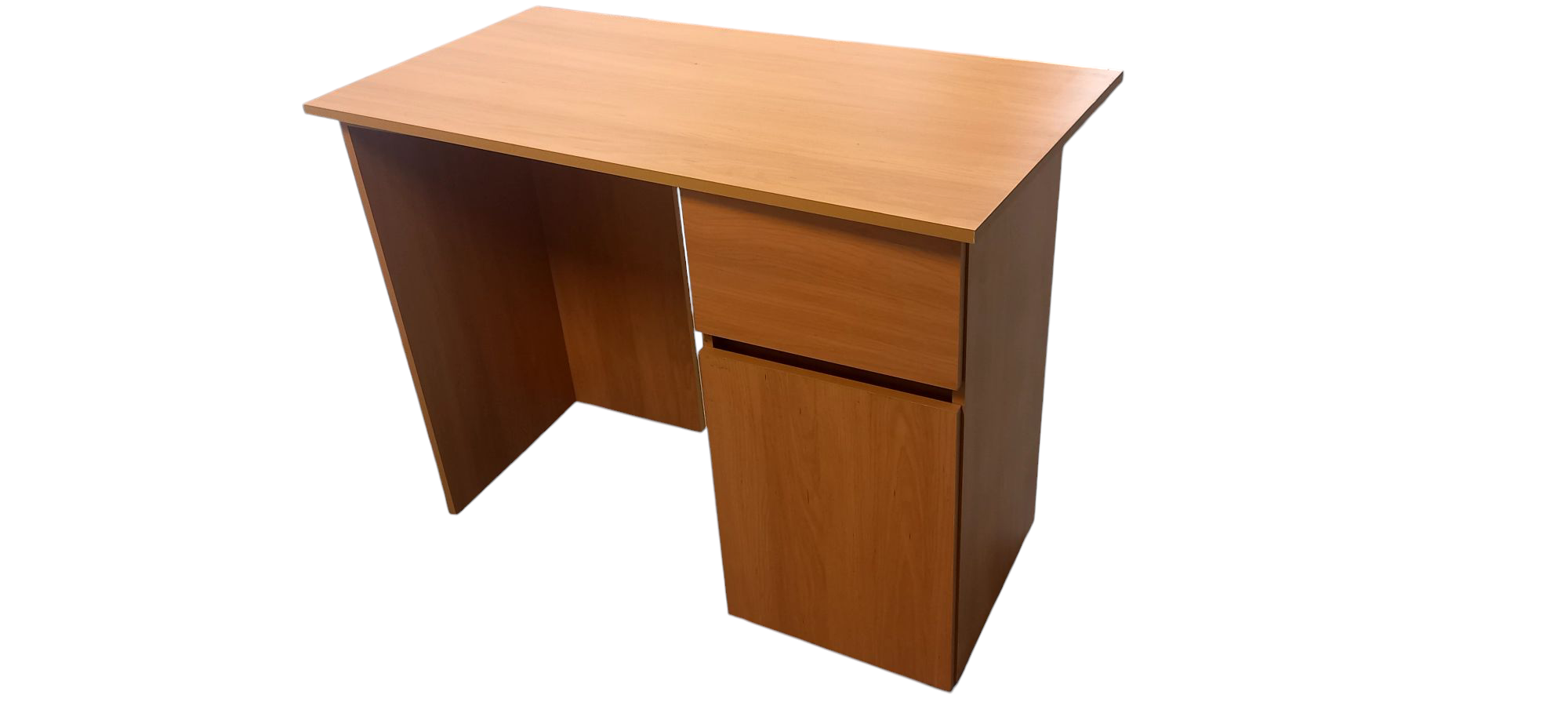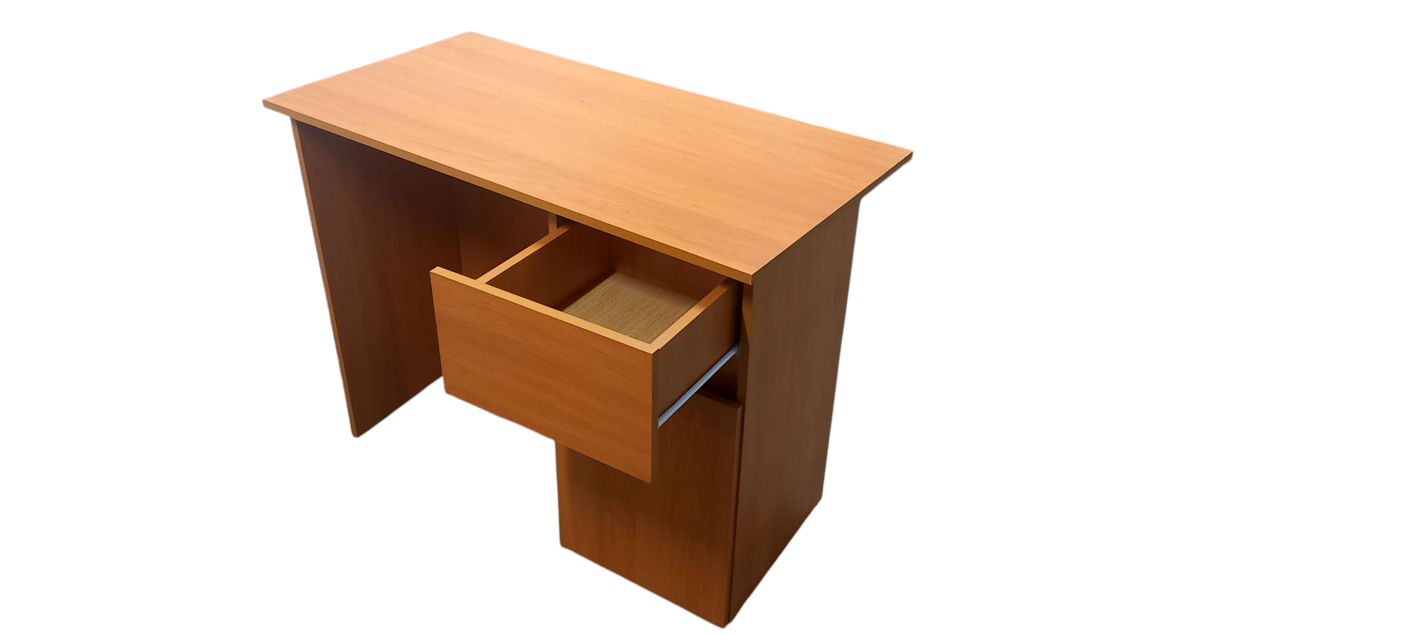 Escritorio 100x50x75 color peralFabricado en melamina 15mm 500 ciclos, un cajón y una puertaLa trasera de la cajonera también está fabricada en melamina de 15mm.