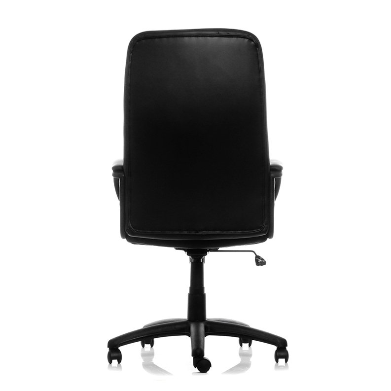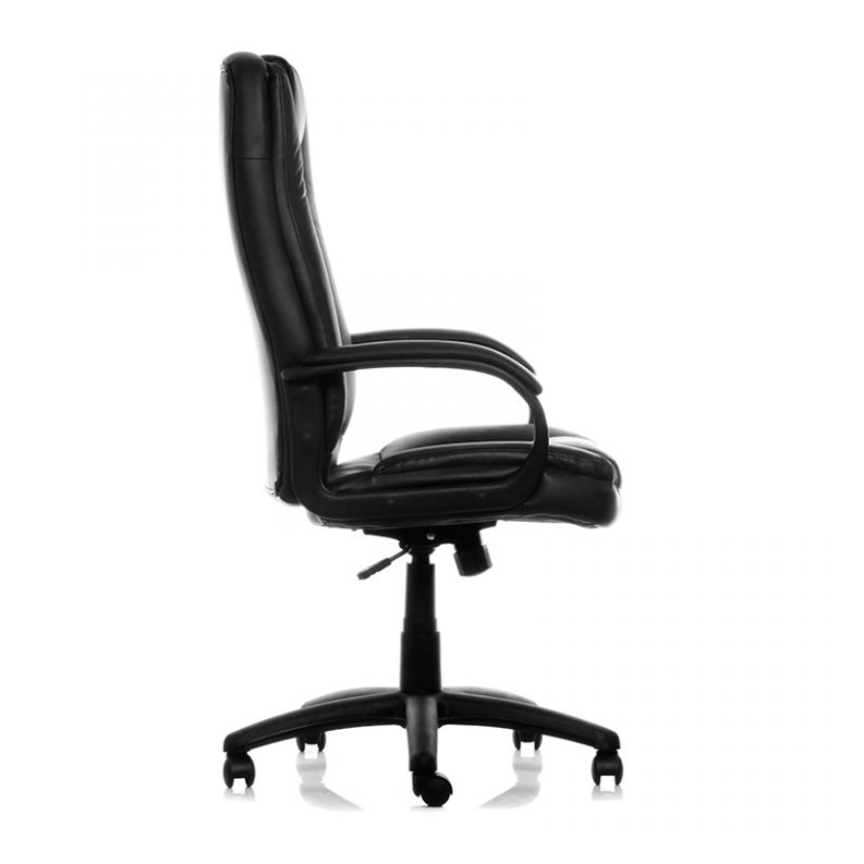 Sillón con asiento y respaldo tapizados en cuero Búfalo, parte trasera y lateral tapizadas en ecocuero, mecanismo basculante, brazos fijos con apoya brazos tapizados, asiento regulable en altura, base nylon.