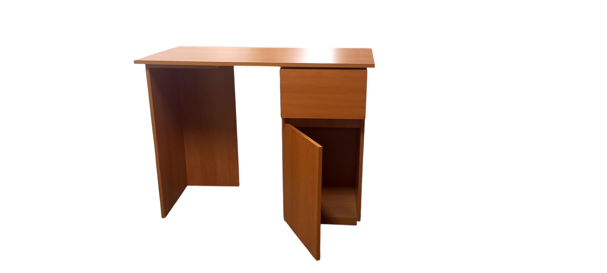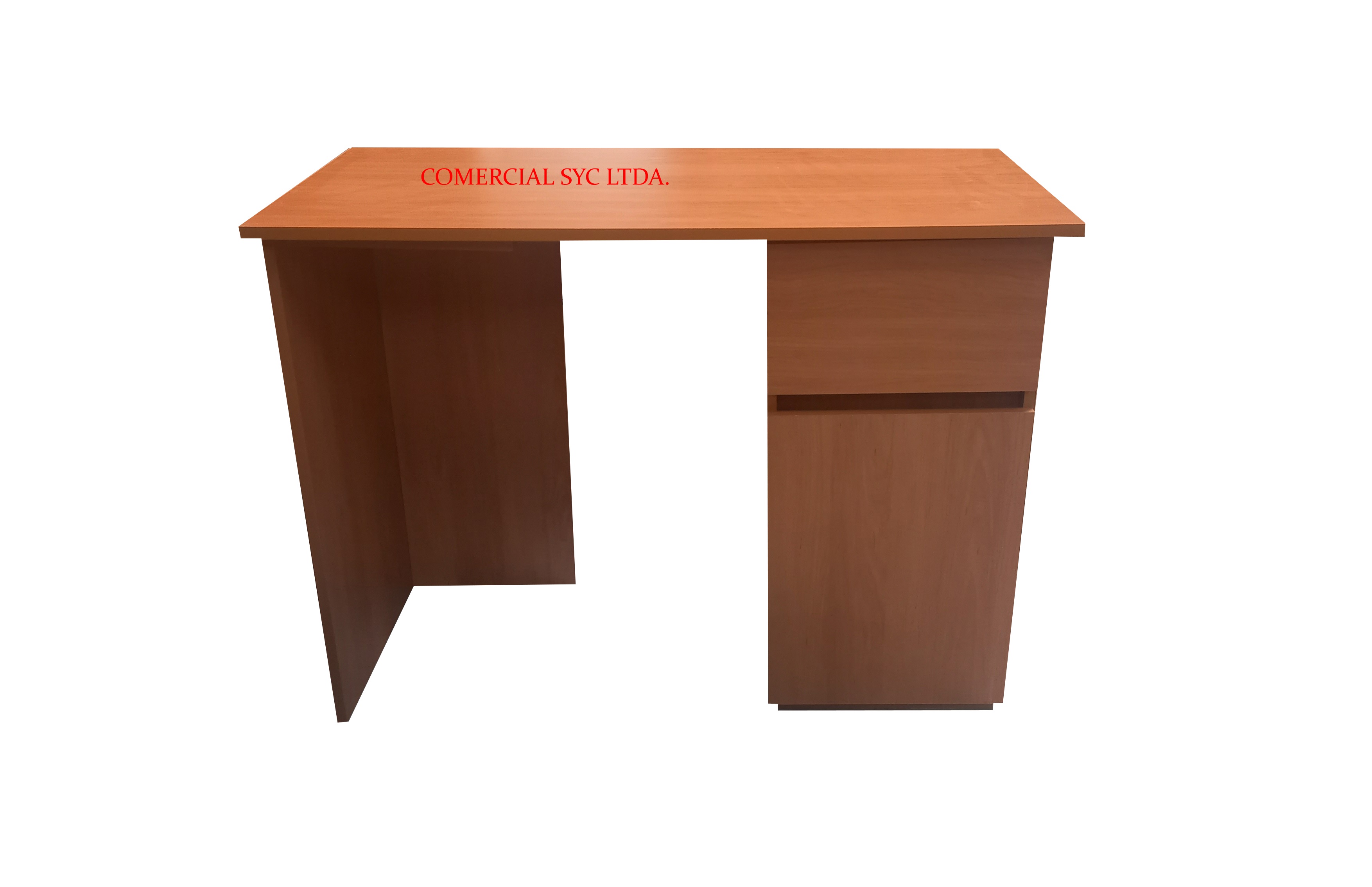 Escritorio 100x50x75 color peralFabricado en melamina 15mm 500 ciclos, un cajón y una puertaLa trasera de la cajonera también está fabricada en melamina de 15mm.
