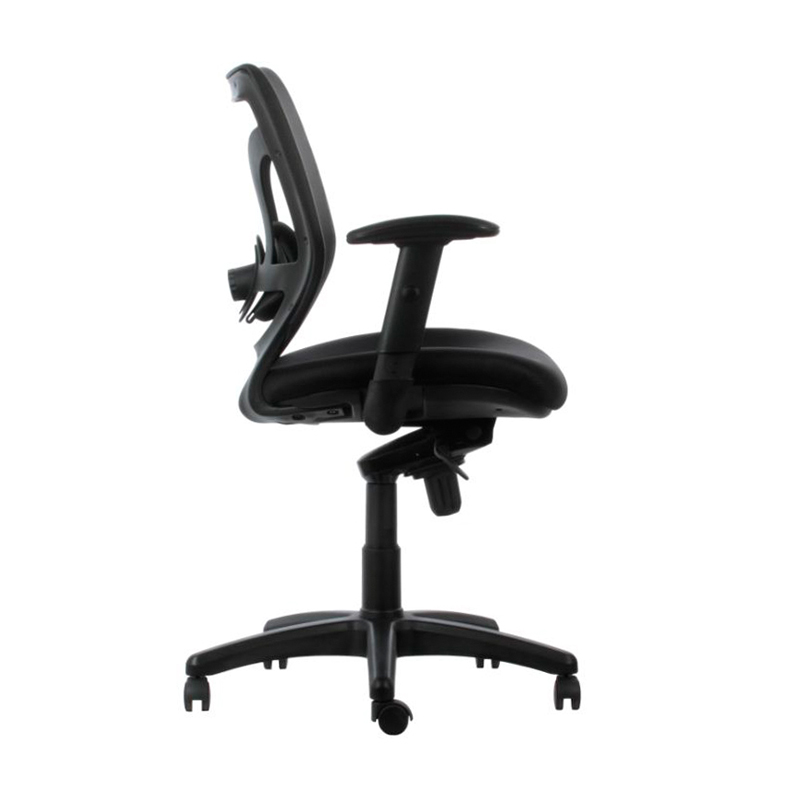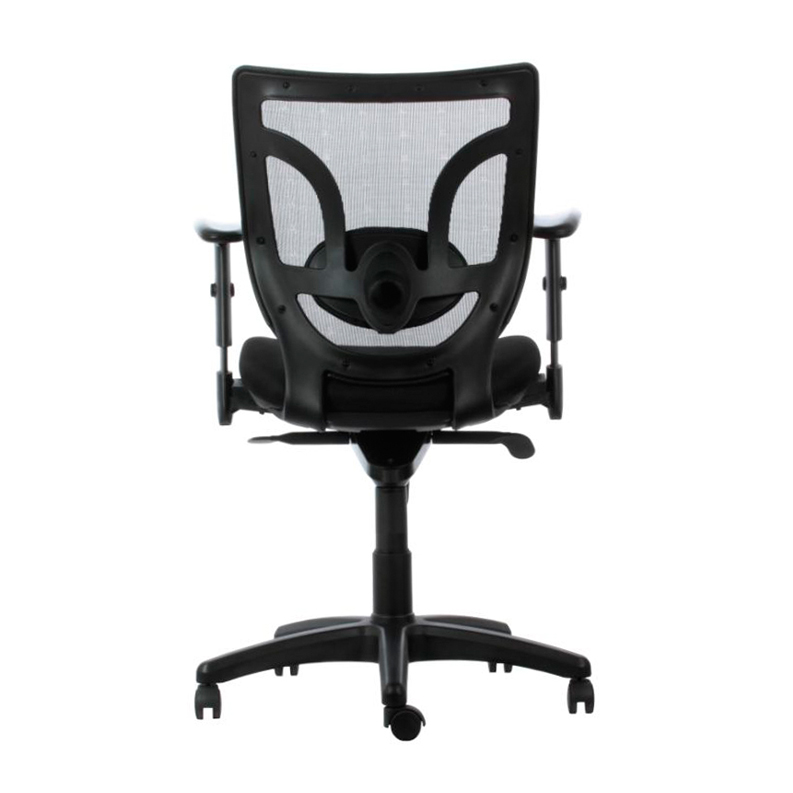 Silla de respaldo alto tapizado en malla negra con apoyo lumbar acolchado regulable en