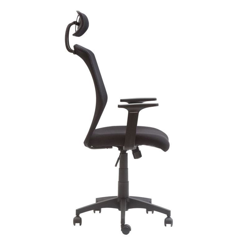 Silla con respaldo alto tapizado en malla tipo tela negra, asiento